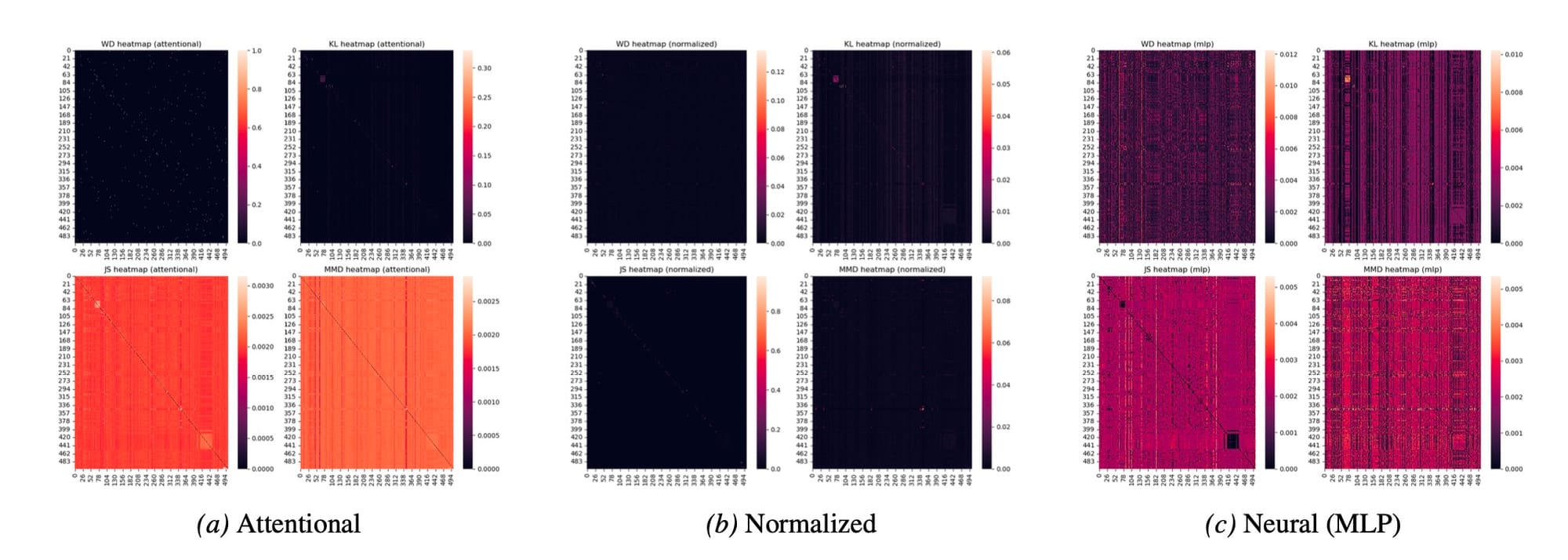 - Medindo a similaridade: Com os datasets representados como distribuições, o próximo passo é calcular a "distância" ou "dissimilaridade" entre o seu novo dataset e cada um dos datasets no banco. Para isso, eles experimentam com várias métricas consagradas, como a Distância de Wasserstein (WD), a divergência de Kullback-Leibler (KL), a divergência de Jensen-Shannon (JS) e a Maximum Mean Discrepancy (MMD). O resultado é um vetor de "pontuações de alinhamento" que quantifica o quão parecido o seu problema é de cada um dos problemas para os quais já existe uma solução (um adaptador LoRA).
